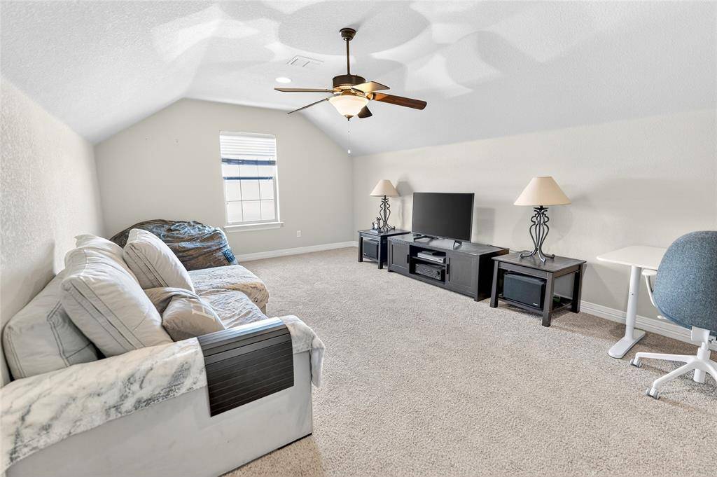 This stunning property welcomes you with an abundance of natural light that pours through every room, accentuating the open floor plan and creating a bright, airy atmosphere from the moment you enter. At the heart of the home sits an impressive chef-inspired kitchen—thoughtfully designed with dual islands, extensive counter space, and generous storage. Whether you're hosting large gatherings or enjoying quiet mornings, this kitchen effortlessly blends function with luxury and serves as the true centerpiece of the home. The expansive layout offers two spacious living areas, ideal for entertaining, relaxing, or giving everyone room to spread out. Upstairs, a large game room provides the perfect space for movie nights, playtime, or a home theater setup. Retreat to the luxurious primary suite, featuring a massive walk-in closet and a spa-like ensuite bath complete with dual sinks and an oversized walk-in shower boasting dual showerheads—a perfect haven to unwind in style. Step outside and discover a backyard built for year-round enjoyment. The wide-open yard—with no trees to obstruct your view or sunlight—leads to a huge resort-style pool complete with a diving board, offering endless summer fun and the perfect backdrop for gatherings of all sizes. This home delivers the space, design, and features today's buyers dream of—light-filled living, luxurious amenities, and indoor-outdoor living at its best.