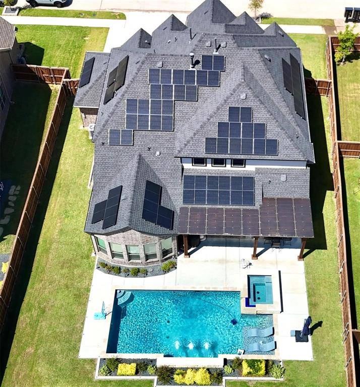 5.125% ASSUMABLE MORTGAGE! Bring Your Offers! Step into elevated luxury with this stunning Coventry-built 5-bedroom, 4-bath masterpiece featuring an oversized 4-car garage and exceptional upgrades throughout. Home is perfectly positioned in a peaceful upscale neighborhood that blends timeless elegance with modern comfort and entertainment-ready spaces. Inside, you'll find expansive living areas adorned with premium finishes and thoughtful design. The state-of-the-art gourmet kitchen is truly a chef's dream featuring maestro quartz countertops, premium appliances, double ovens, wine fridge, butler's pantry, and a large walk-in pantry. With versatile bedrooms on both the main and upper levels, this layout offers unmatched flexibility for multi-generational living, guests, or a home office setup. The living room exudes sophistication with its floor-to-ceiling tiled fireplace and graceful mantle, mirrored by a matching outdoor fireplace on the patio creating seamless indoor-outdoor living. Enjoy endless entertainment in the dedicated game room and media room, perfect for movie nights and gatherings. Your private backyard oasis awaits with a sparkling saltwater pool, lush landscaping and an inviting pergola enhanced by custom JellyFish exterior lighting for unforgettable evening ambiance. This home is loaded with premium upgrades, including: whole home water filtration system, 41 solar panels + backup batteries (incredible $99 monthly utility bill!), Central vacuum system, State-of-the-art security camera system, $250,000+ in luxury upgrades throughout, Home warranty valid until August 10, 2028! This isn't just a home, it's a lifestyle! One filled with comfort, sophistication, efficiency, and unforgettable moments. Move-in ready so bring your furniture!
