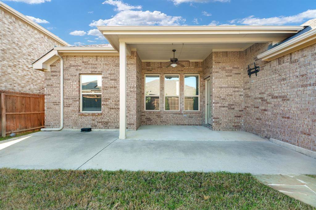 Welcome to this immaculate and beautifully maintained home in the gated community of The Shores at Hidden Cove, conveniently located near Hidden Cove Park, major shopping, and Lewisville Lake. High ceilings and stunning hard-surface flooring flow throughout, complementing a spacious living area ideal for family gatherings and an open kitchen with granite countertops, an undermount sink, stainless steel appliances, and abundant cabinet space. A private flex room offers versatility for a home office, study, library, movie room, or playroom. The home features three nicely sized bedrooms and two full bathrooms, including a private owners' suite overlooking the backyard and featuring a contemporary glass shower, garden tub, and dual modern sinks. Additional highlights include attic storage and beautifully landscaped curb appeal. The generous backyard offers a covered patio and stone fire pit, and the property is within walking distance to the community pool, park, and pond.