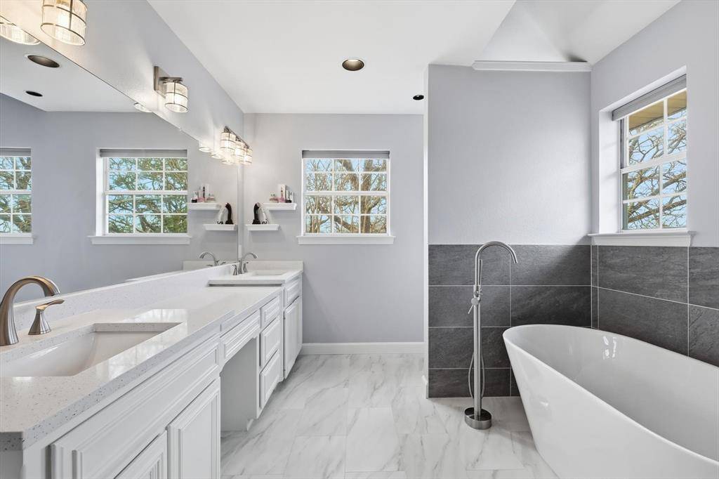 Tucked away on nearly an acre at 1606 Treehouse Lane North, this inviting retreat offers privacy, space, and a peaceful escape from the hustle and bustle. An expansive front porch sets the tone, welcoming you into a home designed for both everyday living and entertaining. Inside, the heart of the home unfolds with a spacious dining room, updated kitchen, comfortable living room, and a dedicated home office—perfect for today's flexible lifestyles. The primary suite is thoughtfully positioned halfway up the stairs and features abundant storage and a beautifully updated bathroom with brand-new tile flooring, tiled shower and bathtub surround, updated counters, and fresh paint. Upstairs, you'll find three additional bedrooms—one with its own en suite bath, while the other two share a well-appointed bathroom. The true showstopper is the basement—yes, a basement in Texas! With its own private entrance, this versatile space is currently used as a home office and offers endless possibilities. The space provides ample room for a gym, game room, additional office space, or even a podcast studio in the soundproof room. Step outside and soak in nature at its finest. The backyard is a summer dream, complete with a pool and deck area that your family and friends will love—ideal for relaxing, entertaining, and making lasting memories. This is a rare opportunity to enjoy space, functionality, and tranquility all in one exceptional home. ***Tax records show this home has 4,415 square feet. The gross living area of this house measured to be 3,538 square feet.  The basement measured an additional 1,326 square feet.**