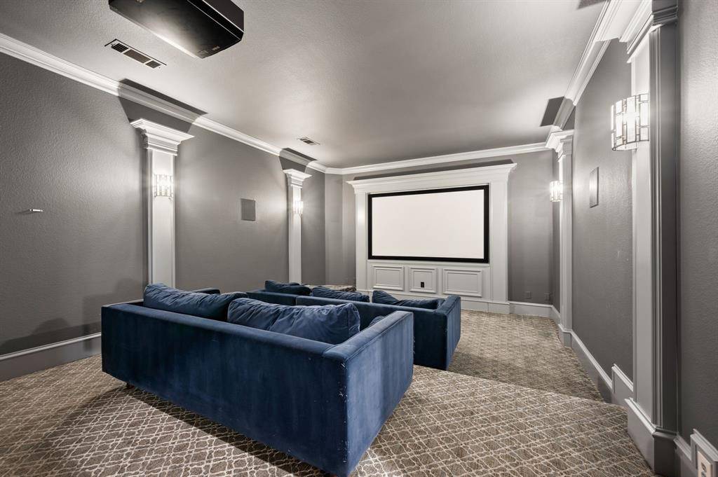 outdoor lighting. The outdoor living space is thoughtfully designed with a spacious patio just off the kitchen and living area, complete with a cozy fireplace, wired speakers throughout the pool and patio, built in BBQ grill—perfect for family gatherings, weekend barbecues, or winding down after a long day. The expansive yard provides plenty of room for kids to play and memories to be made. Inside, rich hardwood floors flow throughout the main living areas, setting a warm and elegant tone. The recently updated gourmet kitchen is the heart of the home, featuring stainless steel appliances, ample light and bright cabinetry, a seamless connection to both indoor and outdoor living spaces. A downstairs media room creates the perfect spot for kids' movie nights or hosting friends. The owner's suite is a private retreat, highlighted by dual walk-in closets and a well-appointed bath. A second bedroom is located downstairs with its own ensuite bath and large walk-in closet providing privacy guests or family. Upstairs, two generously sized bedrooms each offer ensuite baths, along with a game room and additional space ready for future expansion. Practical luxury continues with a large three-car garage—deep enough for pickup trucks—finished with durable epoxy floors with custom built in cabinets, work bench and wall storage. Recent upgrades include new beautifully honed marble counters, new light fixtures, a new roof 2020, all new HVAC systems, and new hot water heaters, offering peace of mind and long-term value.