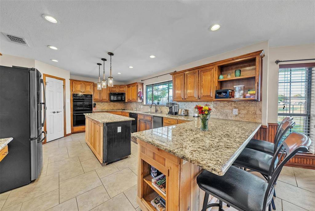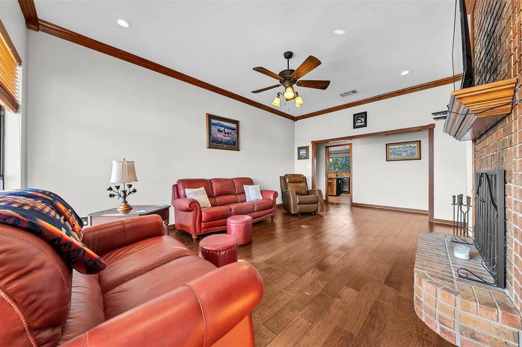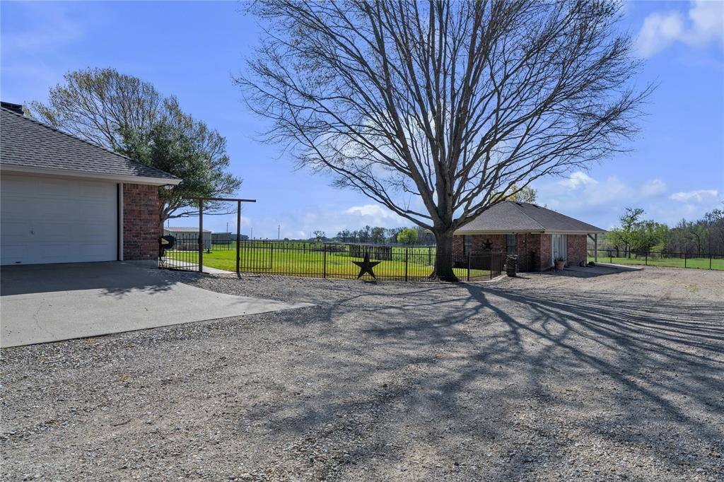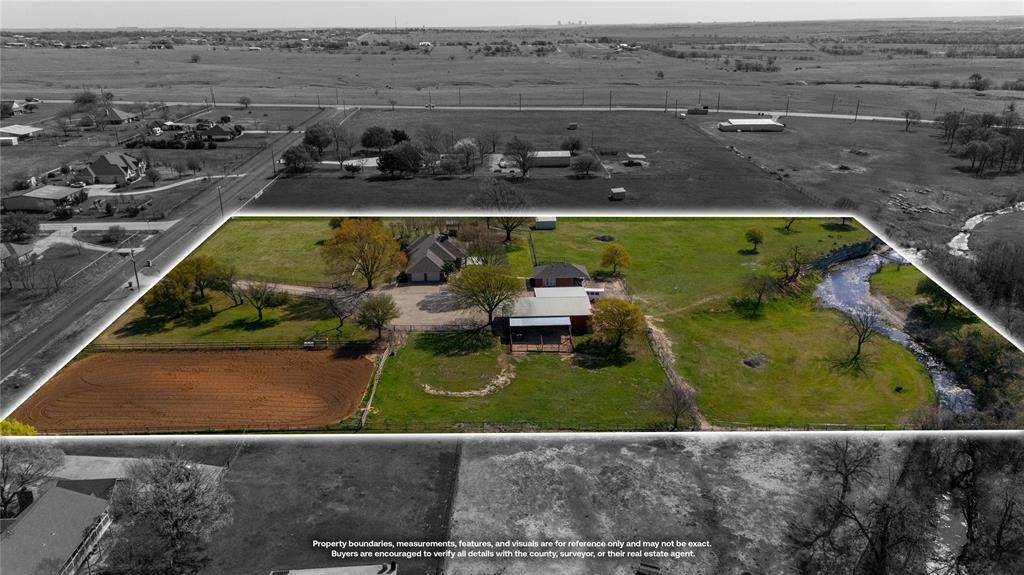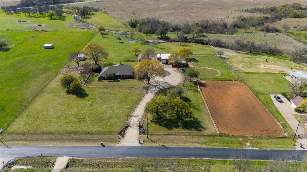 Experience elevated ranch living in Aledo ISD on 5.91 ag-exempt acres. This exceptional property combines refined comfort with professional equestrian functionality. The 2,569 sq ft home showcases vaulted ceilings and rich wood beams, featuring both a striking masonry fireplace and a high-efficiency wood stove that create a warm, inviting atmosphere—perfect for cool Texas evenings. The chef's kitchen features granite countertops, double oven, and reverse osmosis filtration, providing an ideal setting for both entertaining and everyday living. The beautifully remodeled primary bath feels like your own private spa, complete with a picture window and jetted tub for ultimate relaxation. Additionally, the home features separate guest quarters with a half bath.