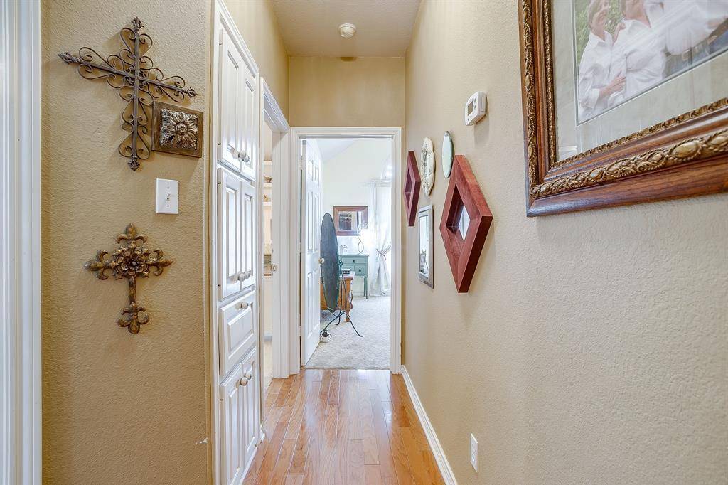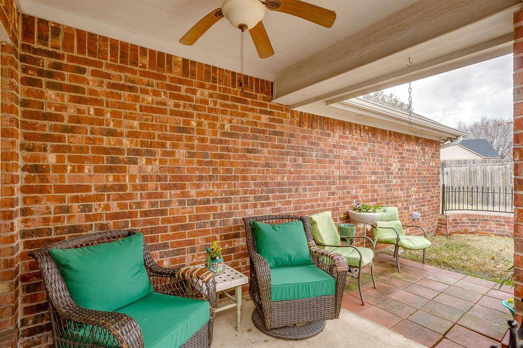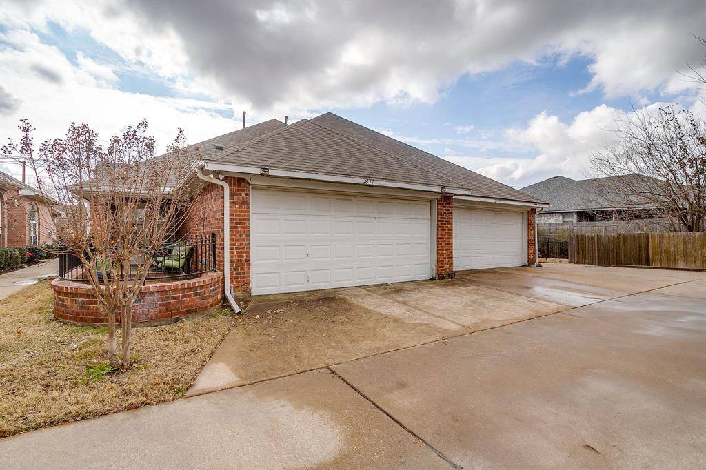 Beautiful half duplex in a quiet community. You'll find custom touches throughout including rich wood floors in the living room and hall, ceramic tile, and elegant crown molding. The open-concept layout is anchored by a cozy gas fireplace in the living room and a wall of windows that floods the home with natural light. Neutral interior tones flow throughout the home. Vaulted ceilings enhance the spacious feel, especially in the primary bedroom, which offers an ensuite bath and walk-in closet. This home includes a spacious kitchen, nicely sized dining area, two bedrooms, two full baths, a utility room and a two-car garage. Enjoy outdoor living on the covered patio with a small grass area. Recent updates include a new roof and water heater both replaced within the last two years. HOA covers management fees, sprinkler system, and lawn care. Alley access to property. Located in the highly sought-after Mansfield ISD. Seller does not have a survey. Buyer will need to purchase a new survey.