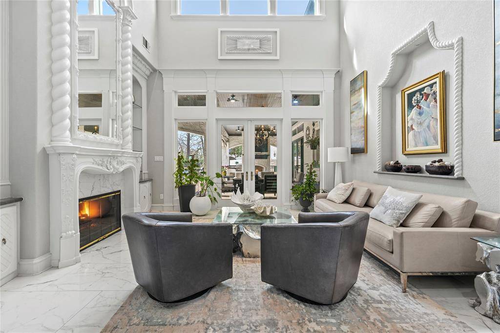 Thoughtfully renovated to blend modern sophistication with timeless charm, the home features crown molding, coffered ceilings, and striking architectural details. A grand sweeping staircase anchors the foyer, alongside a private executive office with custom built-ins and a hidden passage to the primary suite.