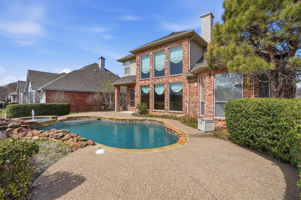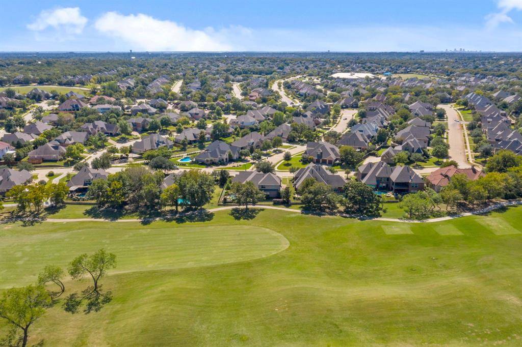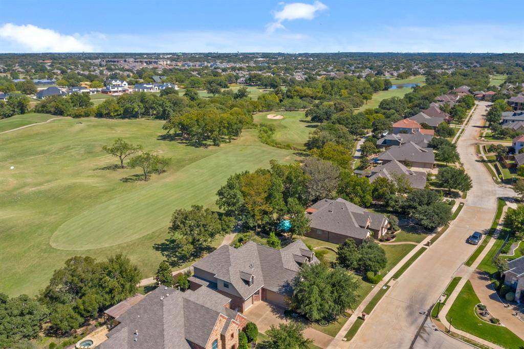 Enjoy breathtaking views of the 7th fairway of Sky Creek Ranch Golf Course from this lovely Hidden Lakes home. The functional, two-story floor plan presents 3798 square feet of living including a formal living room, two beautiful dining areas, a chef's kitchen complete with light taupe granite counters, 42-inch oak cabinetry, and a gas cooktop; an oversized family room with upgraded bay windows, an executive study with French doors and a stately fireplace, four bedrooms, three-and-a-half bathrooms, a spacious utility area with built-ins and room for a fridge, and an attached two-car garage. The second level of the home hosts an entertaining game and media room. Key amenities of the home include cedar shutters, rich hardwoods, dual fireplaces, gracious windows offering picture-perfect golf course and pond views, custom built-ins, a plethora of storage and a wrought iron fence allowing for unobstructed golf course views. The oversized primary suite is highlighted by a sitting area before bay windows and a luxurious bathroom. With magazine-worthy views, alfresco relaxation comes easy by the serene pool with peaceful waterfalls and an attached spa. Hidden Lakes residents enjoy exclusive access to neighborhood pools, parks and heavily wooded bike paths. Feeding the award-winning Keller ISD, the home is conveniently located in close proximity to DFW International Airport, local eateries and upscale shopping.