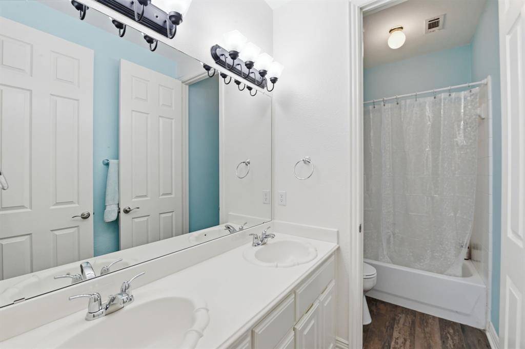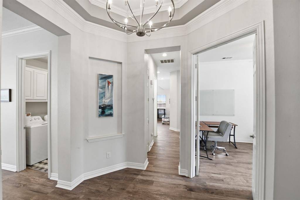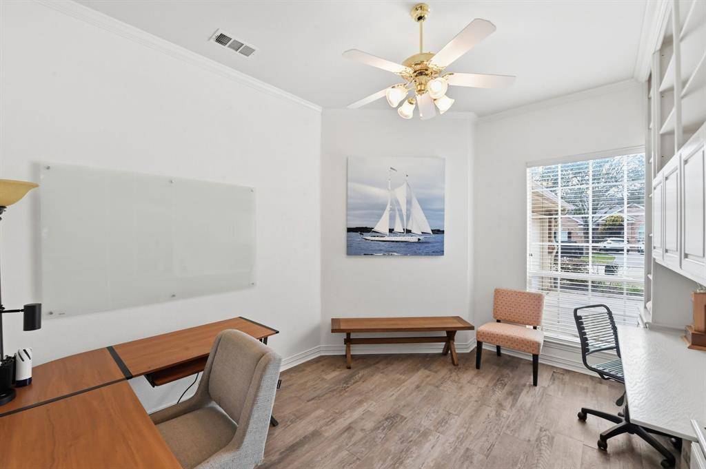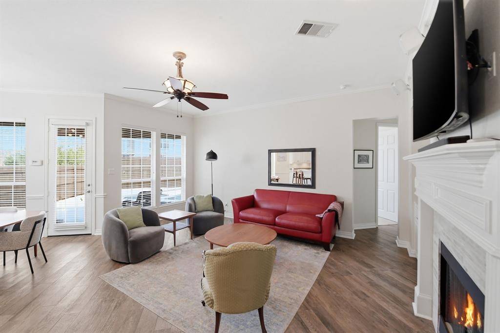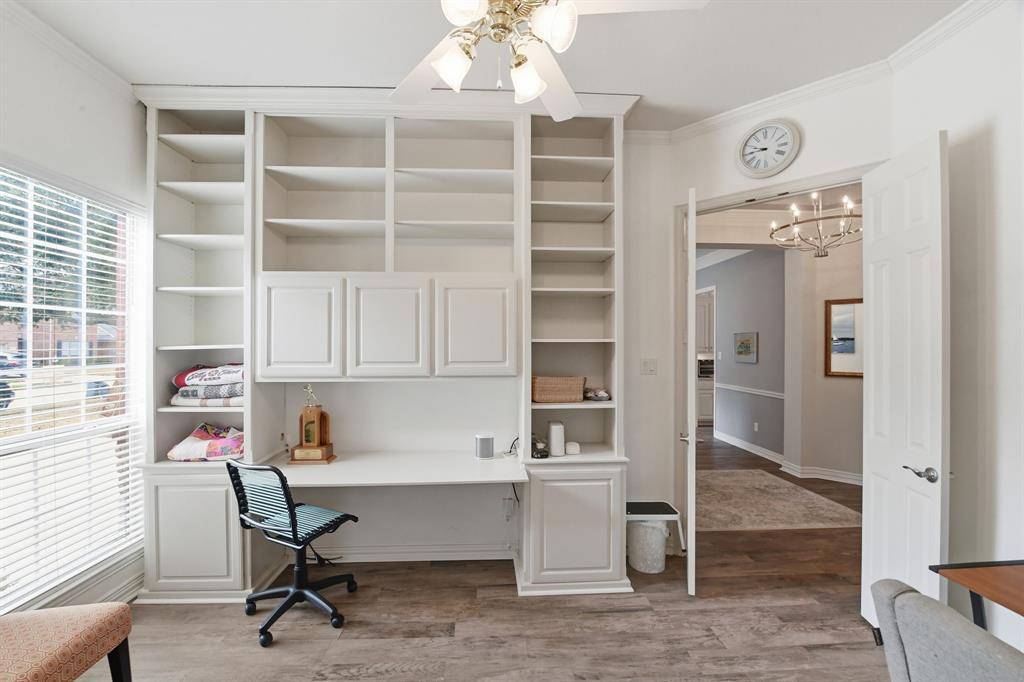 Ideally located on a private cul-de-sac in The Preserve at Hidden Lakes, this meticulously-maintained home presents a traditional stone and decorative brick facade and a charming covered front porch. The functional ONE-STORY floor plan offers 2281 square feet of living and includes three spacious bedrooms, a dedicated study with French doors and custom built-ins, an elegant dining room, an oversized family room anchored by a traditional fireplace with glass-tile surround, a gourmet kitchen complete with lovely marble counters, an undermount sink, stainless steel appliances, subway tile backsplash, gas cook-top, breakfast bar center island and charming breakfast nook; an entertaining game room area, utility room with cabinetry and shelves, and an attached two-car garage. Quality abounds throughout with gracious windows, upgraded vinyl plank flooring, ornate trim and molding, fresh paint, many new modern fixtures, new hardware, custom built-ins, replaced water heater, upgraded carpet, new paint on front door and fence, and a plethora of storage. The primary suite, located away from the traffic areas of the home, boasts a sitting area before windows, a spa-inspired bathroom and a large closet area. Alfresco relaxation comes easy in this beautiful backyard oasis. This outdoor area is highlighted by a custom pergola, a sparkling pool and attached spa - which can be controlled by phone app. This easy to maintain area also includes a replaced pool pump, surface, tile, coping, heater and control panel, a freshly painted eight-foot fence and an expansive deck area. Feeding the award-winning Keller ISD, this Hidden Lake's home is perfectly located near upscale shopping, local eateries and DFW International Airport.