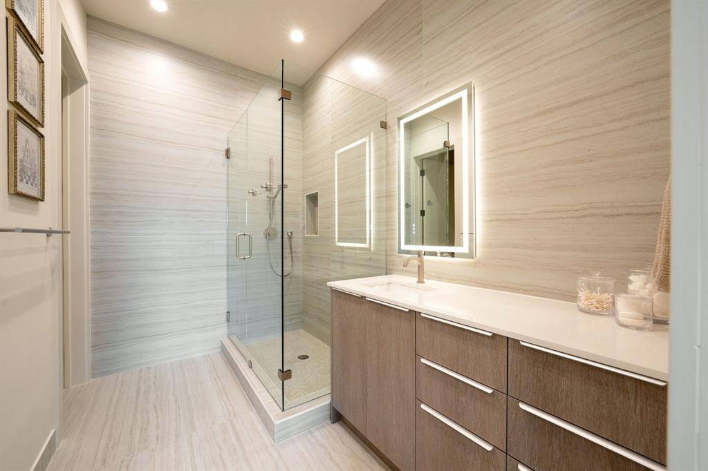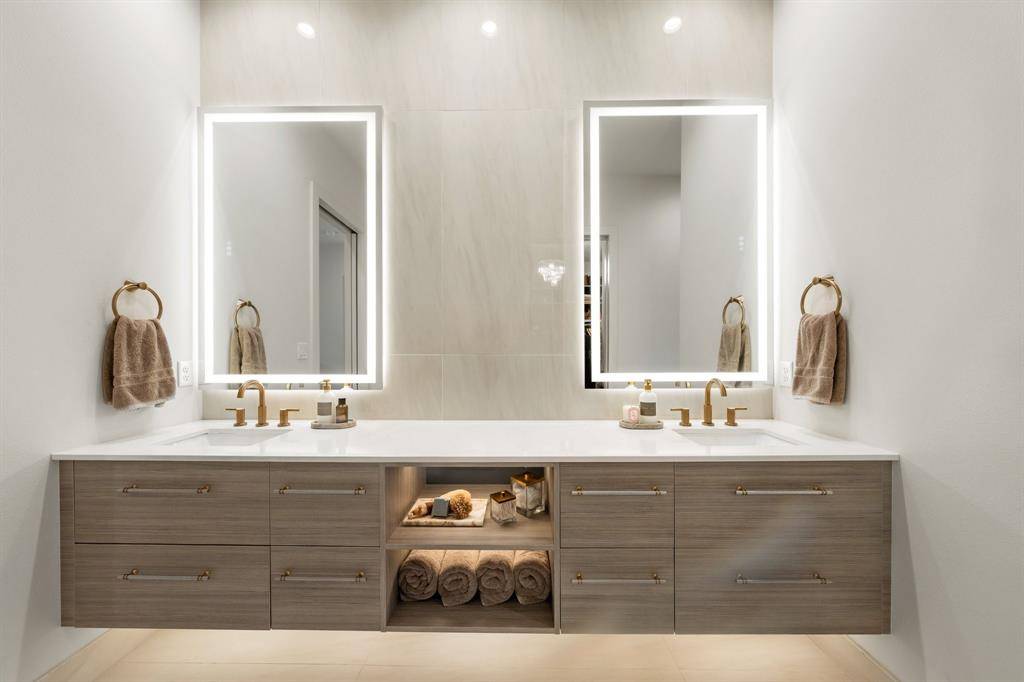 Spacious laundry room. Powder bath. Elevator access and floating staircase The first-floor primary suite is exactly where it should be private, sunlit, and serene. Oversized windows overlook the courtyard, creating a boutique-hotel vibe every single morning. The custom walk-in closet features built-ins and designer lighting. And the spa-inspired ensuite? Its next-level. Double vanities, elevated finishes, and a glass-enclosed wet room bathed in natural light designed to hold warmth and deliver that steam-and-reset energy without ever leaving home. Upstairs continues the flex: Spacious game room with windows overlooking the courtyard Powder bath Oversized secondary bedrooms, each with en suites Private balcony with artificial turf and built-in drainage system low maintenance esp .for the Fur Babies A second laundry room