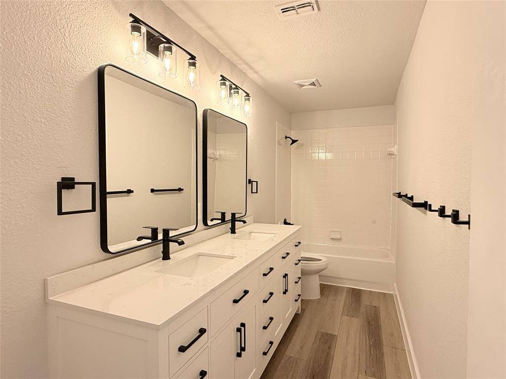 New floors, cabinets, counters, light fixtures, bath features, painting (inside and out), landscaping, and SO MUCH MORE! The kitchen is a dream. So much counter and cabinet space complete with over and under mount lights, and comes equipped with a new farmhouse sink, auto faucet shut off sensor, and all new SS Samsung appliances. Refrigerator and W-D stay (only 3 years old). The remodeled laundry room is AMAZING. Tons of cabinets, plus has a work desk, under mount lights, and a drying station. If you are looking for a home to entertain in, you've found it. The spacious dining room PLUS the oversized breakfast nook and eat-in island makes this home the perfect place to host family and friends. The expanded covered patio overlooking desert willows with gorgeous purple blooms, also makes for a fun and relaxing place to enjoy refreshments with those you love. The upstairs doesn't disappoint either!! Huge game room with side play nook. Unlimited options of how to use that space. The master suite also has a side lounge that could be used as a sitting area, office, nursery, studio, classroom, etc. The secondary bedrooms are oversized as well. Check out the remodeled secondary bath with dual sinks and lots of storage. So much to love about this home. Don't miss it.