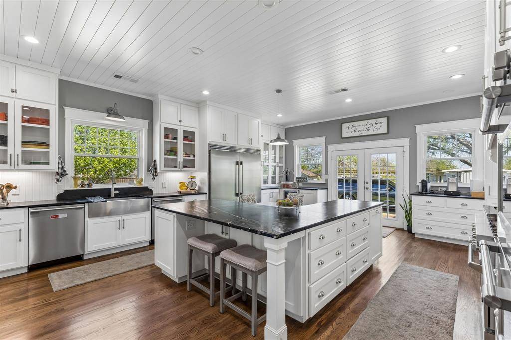 Step back in time and into modern luxury with this stunning 1915 historic home, beautifully remodeled in 2021. Located in charming Roanoke, this one-of-a-kind property blends timeless character with thoughtful updates throughout. A welcoming large front porch invites you inside to an open floor plan. The formal living room features a gorgeous fireplace and built-in bookshelves, while the elegant dining room showcases a stunning chandelier, ample space for large gatherings, and original built-in glass-front cabinets. The chef-inspired kitchen is a true standout, complete with a large island offering seating, cozy built-in banquette seating, two dishwashers, two disposals, two electric ovens, the gas range has double gas ovens and a spacious built-in refrigerator. Just off the kitchen, is the laundry room with a large pantry with plenty of storage. A convenient office with built-in cabinets and desk flows into the spacious primary bedroom, which includes a relaxing seating area. The primary bath pampers with dual vanities, a deep soaking tub, and a separate shower with dual shower heads. Additional highlights include a guest room with built-in bunk beds and reading nooks, plus an upstairs retreat featuring a bedroom with private balcony, a full bathroom, and a large media room perfect for movie nights or entertaining. Outside, enjoy the expansive back deck overlooking a beautiful backyard. There is also a fully equipped 1525 square foot metal building with its own living room, bedroom, bathroom, kitchen, and workshop with electricity. The rustic barn, one of the oldest structures in Roanoke, adds even more character and potential. This rare combination of historic elegance and modern functionality is truly special. Don't miss your chance to call it home!