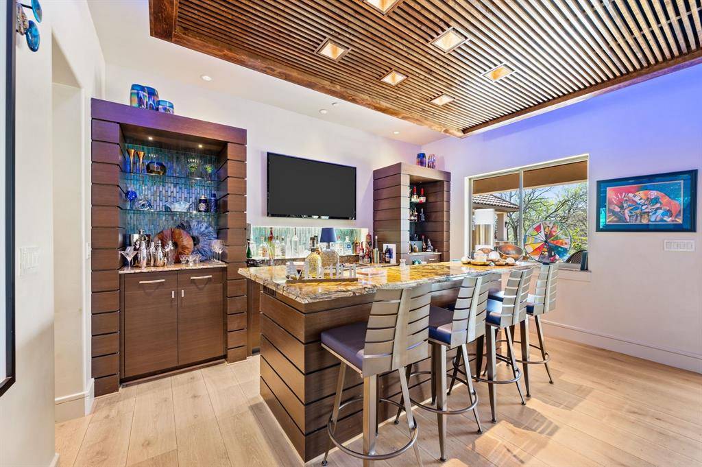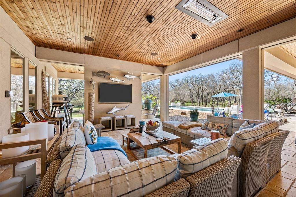 The resort style pool and outdoor entertaining areas create a private oasis, ideal for hosting guests, enjoying Texas evenings, or unwinding between matches and events. Inside, the home is beautifully appointed with high end designer furnishings, premium materials, and luxury appointments, creating an atmosphere that feels both welcoming and refined. Perfectly positioned in prestigious Southlake, the property offers unmatched convenience just minutes from DFW International Airport and centrally located within the DFW metroplex, providing effortless access to Dallas, Fort Worth, major sporting venues, world-class dining, shopping, and entertainment. Several Bat areas for entertianing.... fully equiped media room wiht phenominal acoustics, split bedrooms and multiple outdoor living areas.
