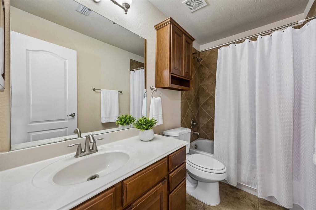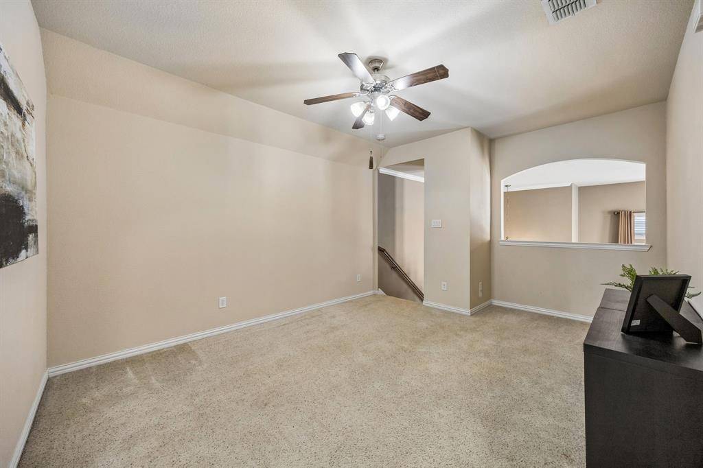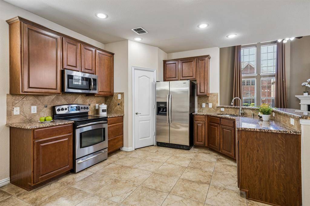 Excellent location in the heart of Plano. This move-in ready home boasts an impressive stone & brick elevation, two story living area, banks of windows, three spacious bedrooms, two and a half baths, a versatile loft, a dedicated study and an oversize garage. SOLAR panels provide energy efficiency & lower utility bills. Ceramic tile flooring throughout LR, dining, kitchen, breakfast area, study & bathrooms. Two story living room is anchored by a corner cast stone fireplace and complemented with a wrought iron stair railings. French doors open to the office on the main floor. The eat-in kitchen features granite countertops, stainless appliances, ample cabinetry & walk in pantry. A separate laundry room has built in wood cabinets. Unwind in the primary suite with a bedroom large enough to accomodate king size furniture and space for a cozy sitting area. The primary bath delights with an updated framless glass shower, dual vanities, garden tub & spacious walk-in closet. Updates include NEW ROOF & NEW HVAC in 2025. HOA covers front yard maintenance. Just minutes to schools, shopping, dining & parks . Close access to Hwy 75 & DNT. This home offers a perfect blend of comfort, style & convenience. A must see.
