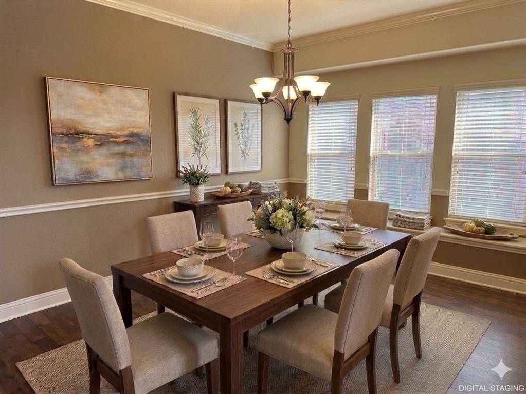 As you cross the threshold, the warmth of rich hardwood floors guides you through a thoughtfully designed two-story layout. The soaring ceilings are accented by intricate crown molding and elegant tray details, creating an atmosphere of refined luxury. The heart of the home is a seamless blend of a gourmet kitchen and open-concept living areas—perfect for hosting grand holiday gatherings or enjoying quiet, sun-drenched mornings.