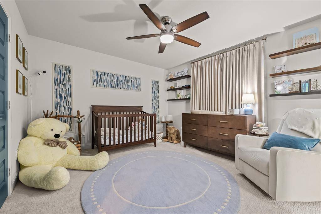 Upstairs, you'll find a spacious secondary living area with a built-in workstation, perfect for a study zone, media room, or game room. Three additional bedrooms and two full baths are located upstairs, including a convenient Jack-and-Jill bath shared by two bedrooms, making it ideal for family living or guest accommodations.