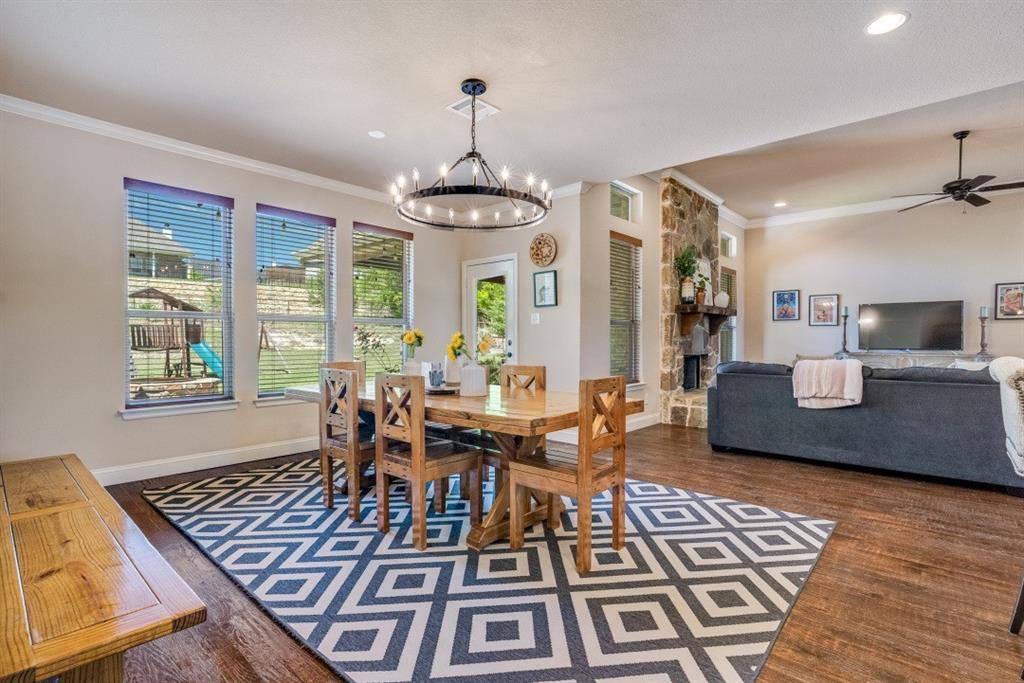 Beautiful custom home in Lakeway Estates with an ideal layout for family living and entertaining. Features include hand-scraped floors, plantation shutters, designer lighting, and a floor-to-ceiling stone wood-burning fireplace. Open concept living, dining, and kitchen offer great flow and functionality.